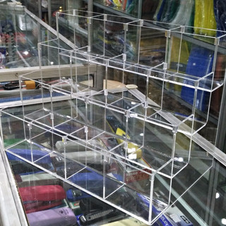 Terbuat dari acrylic 3mm Clear (MADE IN TAIWAN) SUMIPEX Ukuran Acrylic secara keseluruhan Lebar: 23.4 cm Panjang: 32.5 cm Tinggi: 23 .5 Ukuran lubang: Tinggi: 8cm Panjang: 7.8 cm Lebar 4.6cm Terdapat 16 lubang pensil/pena Bisa dipesan dengan ukuran lain, silahkan hubungi kami untuk informasi lebih lanjut